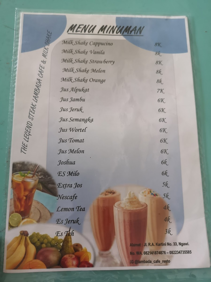 Welcome to Lambada Cafe (Steak & Milkshake), a culinary gem located in the heart of Ngawi, East Java. This cozy café specializes in mouthwatering steaks and delightful milkshakes, ensuring your dining experience is both satisfying and memorable.